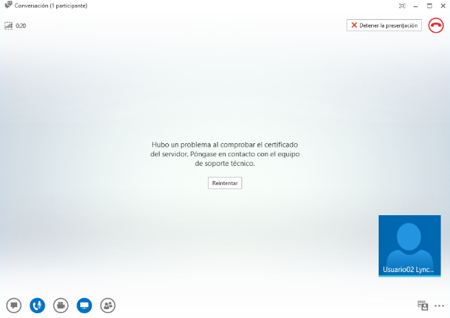 Hubo un problema al comprobar el certicado del servidor. Pongase en contacto con el equipo de soporte técnico