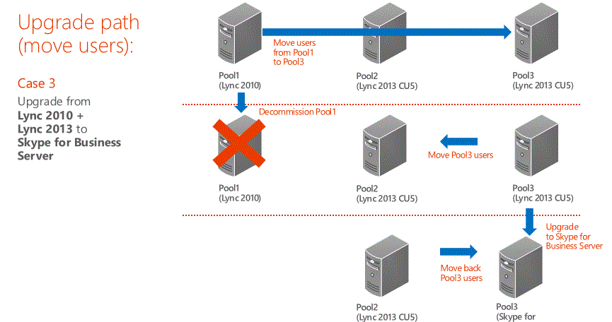 Y si se tiene un escenario con coexistencia entre Lync 2010 y Lync 2013, sera necesario migrar todo a Lync 2013, antes de poder hacer la migracion a SfB.