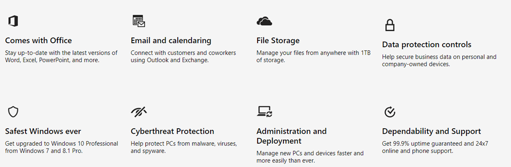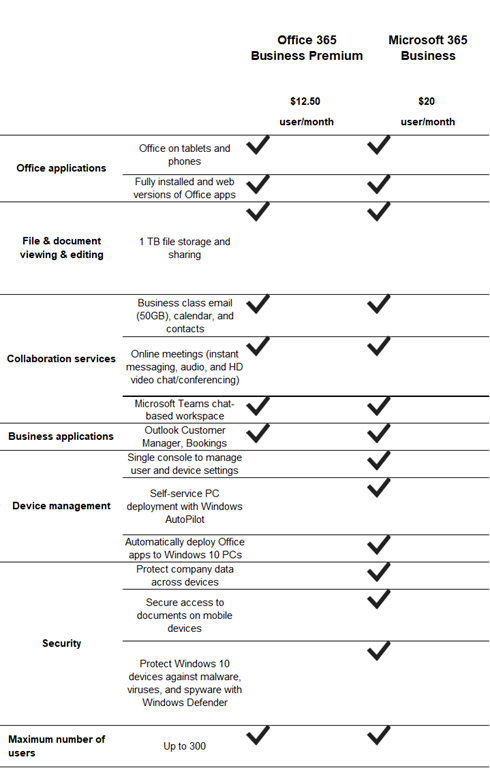 Microsoft 365 Business brings together features from across Microsoft’s offerings in a solution designed for small and medium-sized businesses. It’s powered by Office 365 and Windows 10, with device management and security features to help ensure your company’s data is protected.