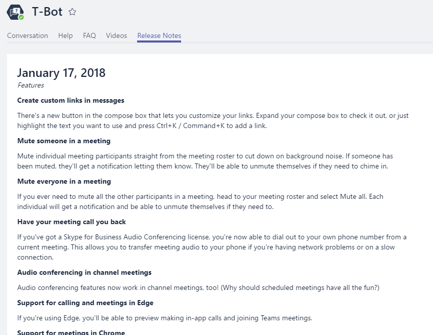 El cambio de presencia es solo una de las opciones que tenemos, tambien contamos con la opcion de ver que hay nuevo en Teams directamente desde el propio cliente, para ello solo tenemos que poner el siguiente commando /whatsnew y nos mostrara las actualizaciones que se realizan a MSTeams , filtrado por fecha