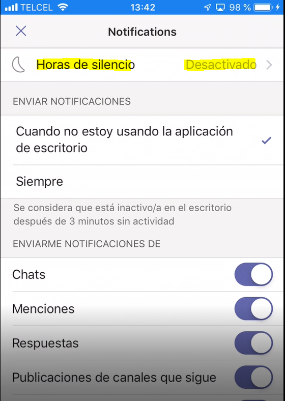 Veremos en la parte superior, Horas de Silencio y lo tenemos como desactivado, vamos a dar click ahí.