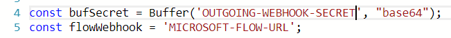 Linea 4. Donde muestra ‘OUTGOING-WEBHOOK-SECRET’ vamos a reemplazarlo con el Token del Webhook. (aquel que les mencione no olvidaran guardar!)