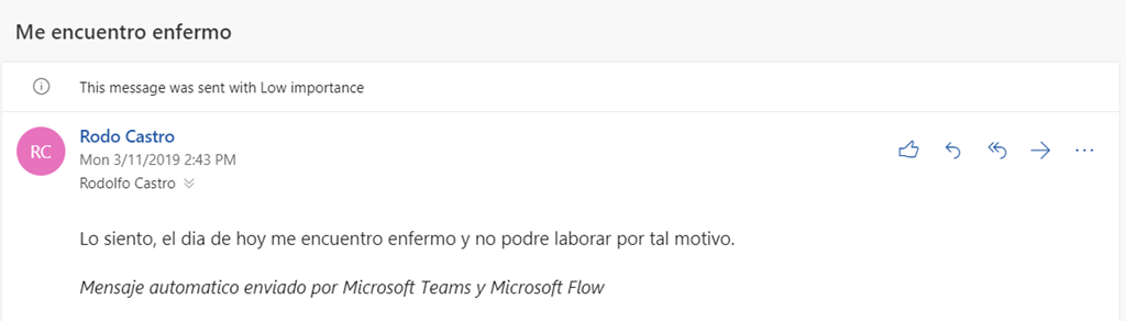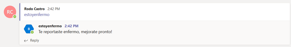Que les parecería que con solo entrar a Teams y mencionar “@estoyenfermo” se haga un proceso automático con lo siguiente