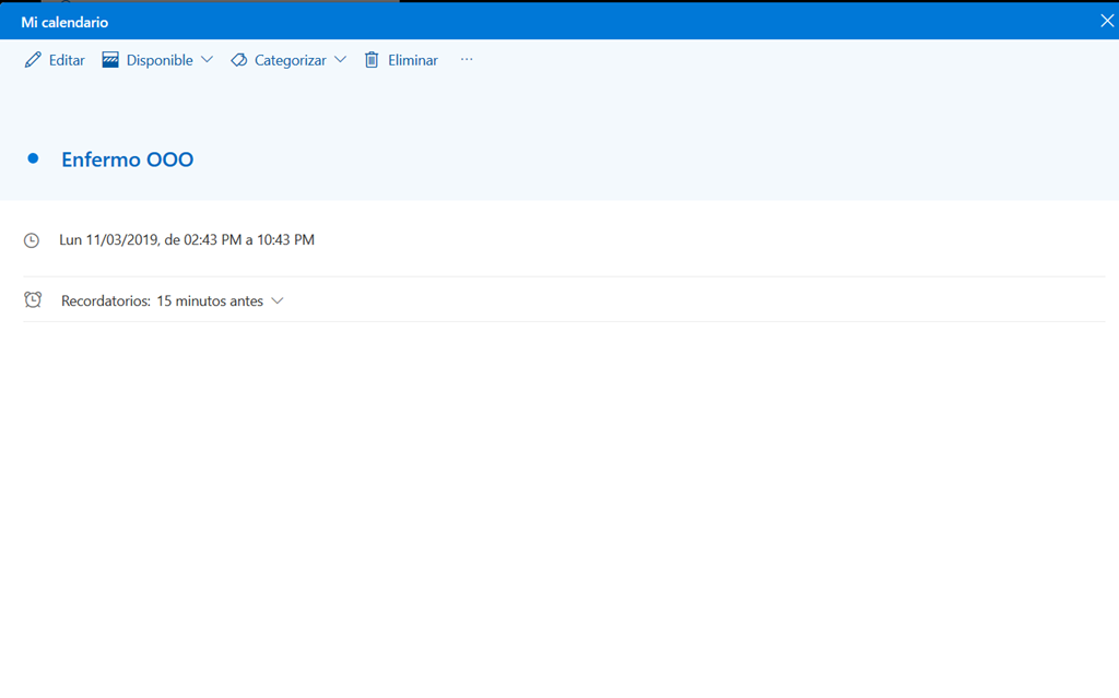 Crear un evento en el calendario mostrando que no se encuentra laborando