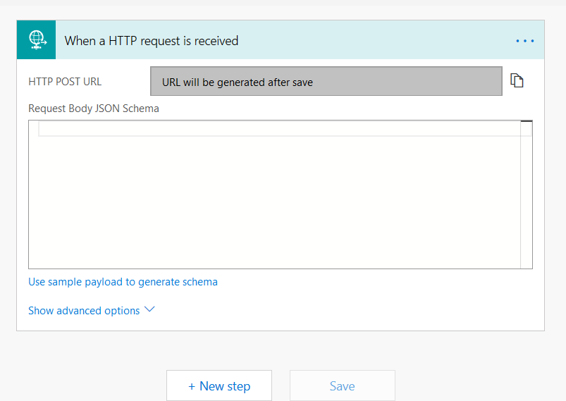Nos indicara que la URL para este request será creada después de que salvemos el Flujo, así que no nos preocupemos por eso (por ahora) y damos clic en “+New step”