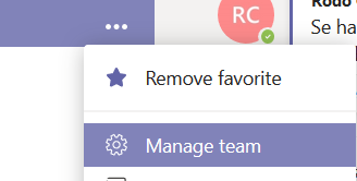 Ahora vamos a Teams para crear el Outgoing webhoook. Para ello vamos al Teams donde queremos que se llame a este flujo, damos clic en los 3 puntos para mas opciones y seleccionamos, Manage Team