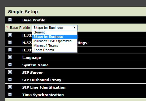 Seleccionamos Simple Setup en el menú superior y en Base Profile seleccionamos Skype for Business/Lync