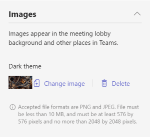 The images will appear as the background in the meeting lobby. The accepted formats for this image are as follows.