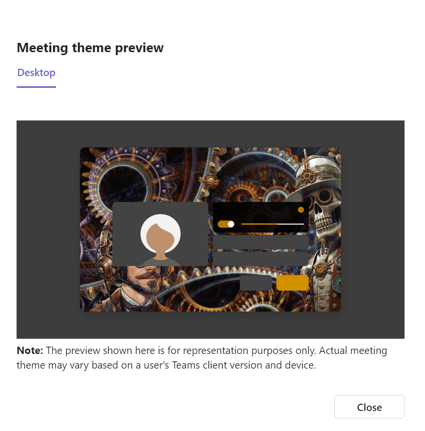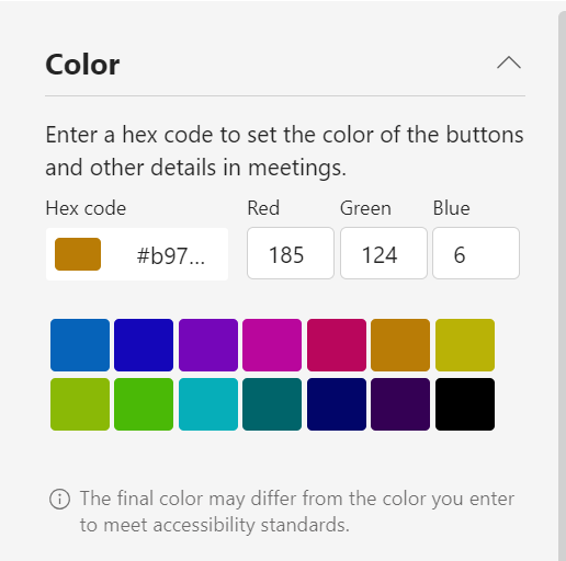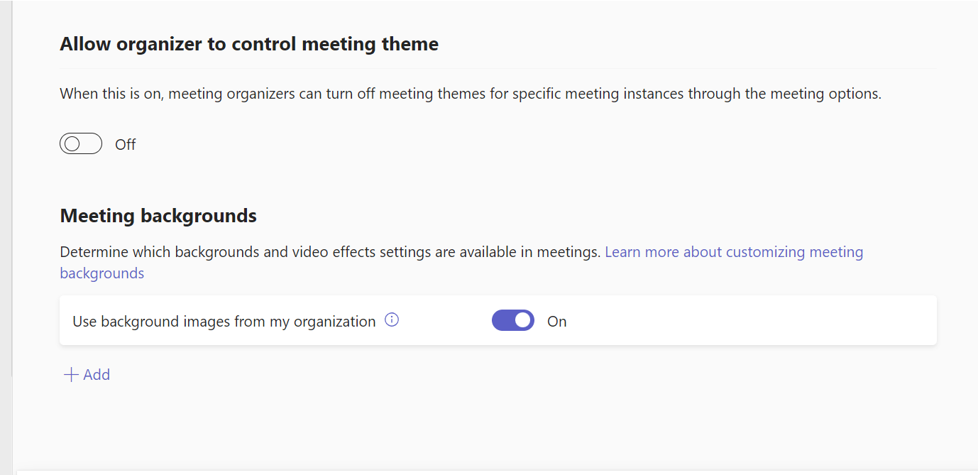 All of these customization options foster a branded meeting experience by incorporating visual assets (ie, an organization’s logo, branding, and color theme) into meetings. Branded meetings are not currently supported in Microsoft Teams Rooms.