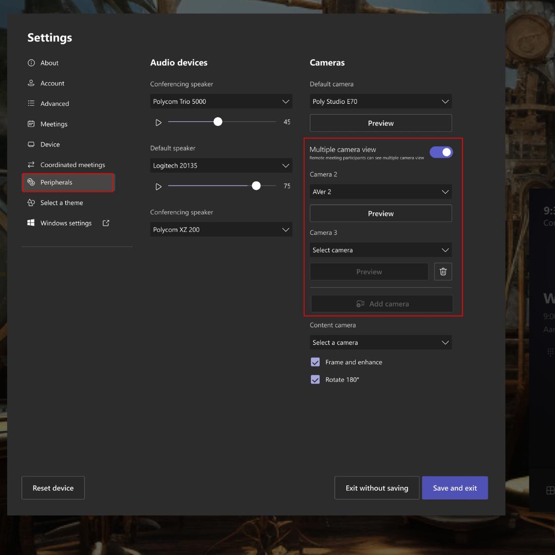 - Configuración: Asegúrate de que los admins activen la vista de múltiples cámaras en los dispositivos locales o en el portal de administración de Teams Pro.